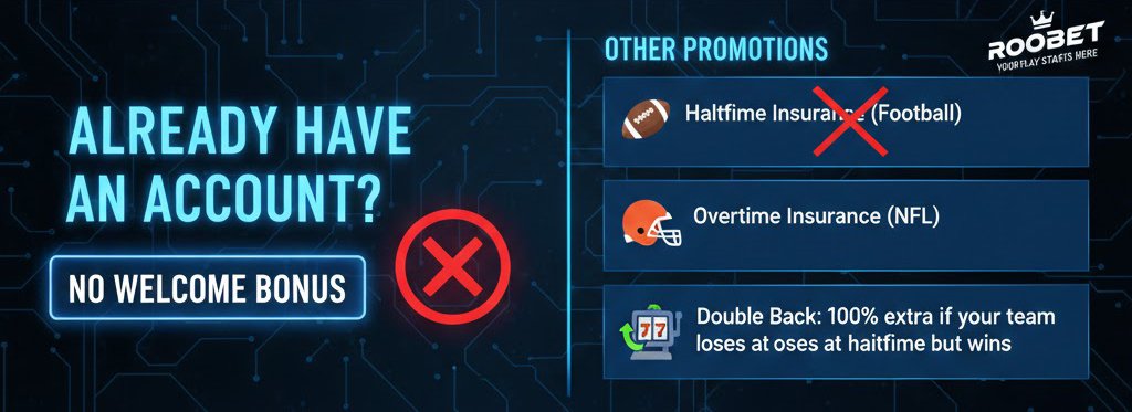 Even as an existing user, you can still enjoy other special Roobet promotions, such as Halftime Insurance for football matches and Overtime Insurance for NFL games. There’s also Roobet’s Double Back offer, which gives you 100% extra if a team you backed loses at halftime but ends up winning the match.