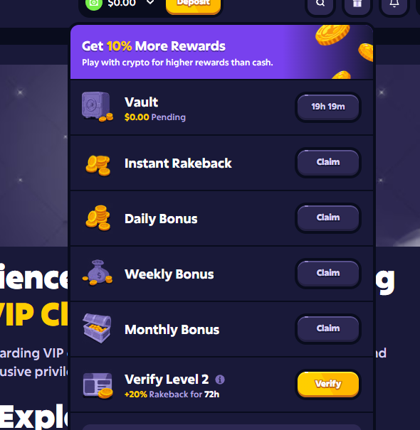 If you created a Roobet account before reading this guide, then unfortunately you won’t be able to claim the welcome bonus. However, that doesn’t mean there’s nothing left for you on the platform.