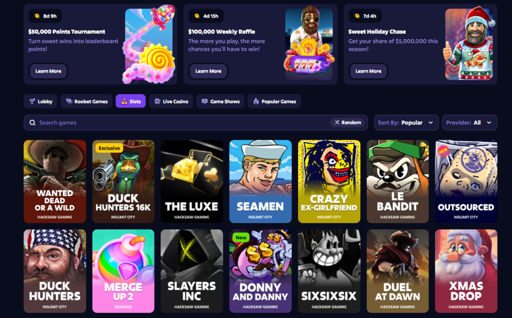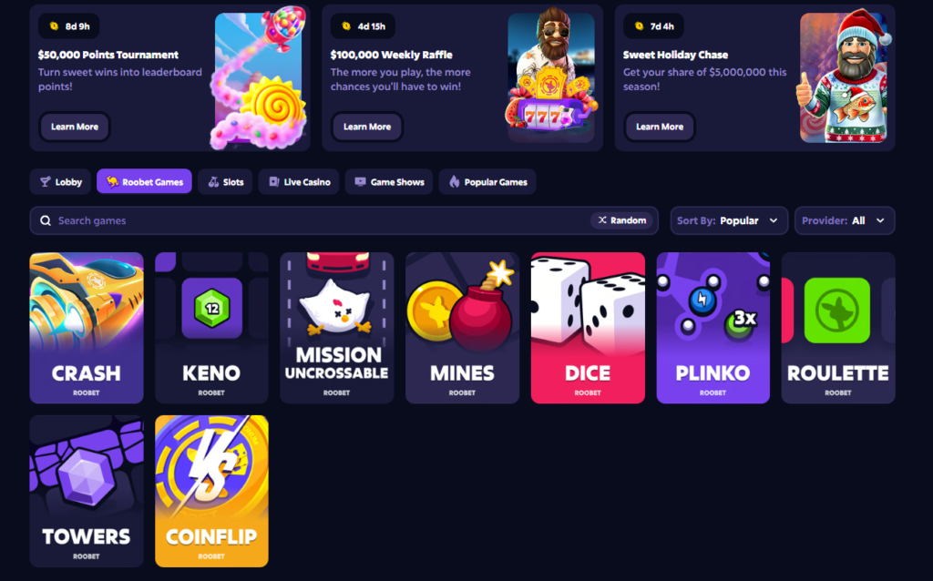 And if you still need one more reason to join, how about access to over 3,000 casino games? That includes everything from classic card and table games to game shows and Roobet-exclusive titles. Whether you sign up with a code or not, you’ll get access to a massive range of options, covering everything from sports betting to slots and beyond.