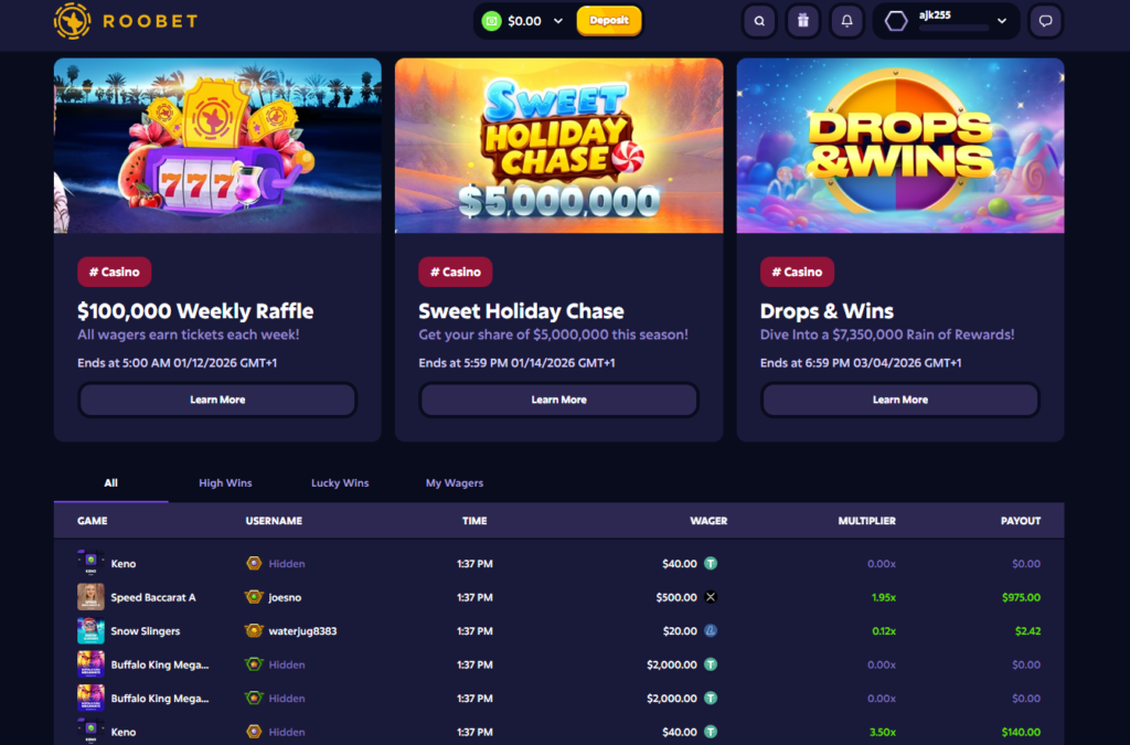 That said, Roobet is always updating and expanding its offers. If enough players show interest, there’s a good chance no-deposit bonuses could be introduced in the future for both new and existing users.
